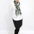 生地感よりカジュアルな普段使いにも、少しフォーマルなシーンでも使いやすいタイプです。スタイルや場所を問わず合わせることができる優れたストールです。