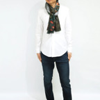 生地感よりカジュアルな普段使いにも、少しフォーマルなシーンでも使いやすいタイプです。スタイルや場所を問わず合わせることができる優れたストールです。