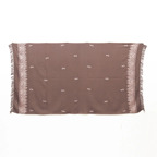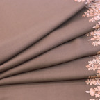 192cm×102cm大判ショールサイズで、巻きでも羽織でもどちらも使いやすいストールです。特に羽織は全面に施された刺繍が美しく輝き、サッとあしらうだけでゴージャスな雰囲気に変化します。横幅が特に長いのでドレスや着物などの羽織物としても重宝します。