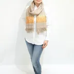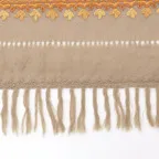 192cm×102cm大判ショールサイズで、巻きでも羽織でもどちらも使いやすいストールです。特に羽織は全面に施された刺繍が美しく輝き、サッとあしらうだけでゴージャスな雰囲気に変化します。横幅が特に長いのでドレスや着物などの羽織物としても重宝します。