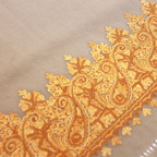インド最北端カシミール地方で作成された緻密な手刺繍ストールは、ため息が出るほど美しい仕上がり。その製作期間は数ヶ月の時間を要します。