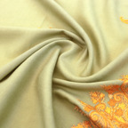 サイズの大きな生地に施されたデザインで程よい落ち感と十分な重量感もあります。一度纏えば何かに守れられているような安心感を得ることができるはずです。 サイズの大きなショールへの手刺繍は長い経験と高い技術を持ったごく一部のマスタリーのみが行います。現在ではこのような手刺繍の技術を受け継ぐ職人はごくわずかとなっており、世界的にも希少な一枚となっています。