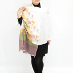 全面に施されたアーリ刺繍が美しく、品の良い女性らしい装いを叶えてくれます。カジュアルな普段使いはもちろん、フォーマルなシーンにも使いやすく、さらに和装とも相性が非常に良くなっています。スタイルや場所を問わず合わせることができる優れたストールです。