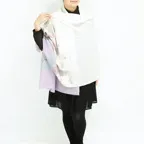 全面に施されたアーリ刺繍が美しく、品の良い女性らしい装いを叶えてくれます。カジュアルな普段使いはもちろん、フォーマルなシーンにも使いやすく、さらに和装とも相性が非常に良くなっています。スタイルや場所を問わず合わせることができる優れたストールです。