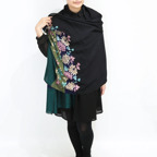 全面に施されたアーリ刺繍が美しく、品の良い女性らしい装いを叶えてくれます。カジュアルな普段使いはもちろん、フォーマルなシーンにも使いやすく、さらに和装とも相性が非常に良くなっています。スタイルや場所を問わず合わせることができる優れたストールです。