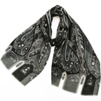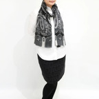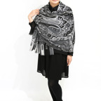 扱いやすいモノトーンベースのペイズリー柄ストール。デザイン性の高さはもちろん、肌触り良さもぜひご体感いただきたい一枚です!