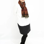 スタンダードな大判サイズで、首に巻くことはもちろん、室内でのひざ掛けにも、肩から羽織る使い方もできます。特に羽織りは、パッと華やかにエレガントな雰囲気に変わります。上半身を覆えるので、着ている服を気にせず合わせることができます。忙しい朝もコーディネートを気にする必要はありません。