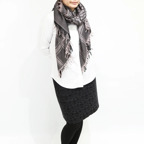 「流行は気になるけれど、みんなと同じは嫌」というアナタのためのショール。デザインもサイズも他にはない一枚です。