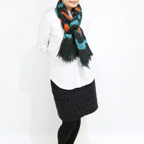 非常に大きなショールサイズで、広げて羽織れば上半身をすっぽりと覆うことができます。縦横の長さも十分にあるため、巻き方の自由度が広がります。程よいボリューム感と立体感を簡単につくることができるため、一巻きでこなれた印象になります。面積もあるので、真夏の室内での冷房対策や膝掛けとしても使いやすくなっています。