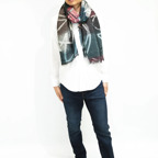 非常に大きなショールサイズで、広げて羽織れば上半身をすっぽりと覆うことができます。縦横の長さも十分にあるため、巻き方の自由度が広がります。程よいボリューム感と立体感を簡単につくることができるため、一巻きでこなれた印象になります。面積もあるので、真夏の室内での冷房対策や膝掛けとしても使いやすくなっています。