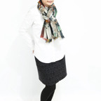 まるでアートのようなグラフィカルなデザイン。多色使いで着回しやすく、アクセント効果も兼ねた優れた一枚です。