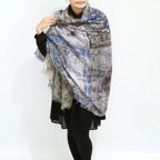 非常に大きなショールサイズで、広げて羽織れば上半身をすっぽりと覆うことができます。縦横の長さも十分にあるため、巻き方の自由度が広がります。程よいボリューム感と立体感を簡単につくることができるため、一巻きでこなれた印象になります。面積もあるので、真夏の室内での冷房対策や膝掛けとしても使いやすくなっています。