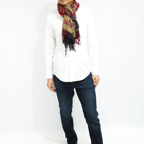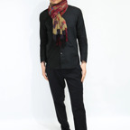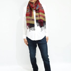 スタンダードな大判サイズで、首に巻くことはもちろん、室内でのひざ掛けにも、肩から羽織る使い方もできます。特に羽織りは、パッと華やかにエレガントな雰囲気に変わります。上半身を覆えるので、着ている服を気にせず合わせることができます。忙しい朝もコーディネートを気にする必要はありません。