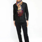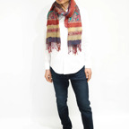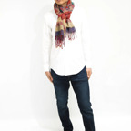 スタンダードな大判サイズで、首に巻くことはもちろん、室内でのひざ掛けにも、肩から羽織る使い方もできます。特に羽織りは、パッと華やかにエレガントな雰囲気に変わります。上半身を覆えるので、着ている服を気にせず合わせることができます。忙しい朝もコーディネートを気にする必要はありません。