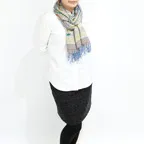 スタンダードな大判サイズで、首に巻くことはもちろん、室内でのひざ掛けにも、肩から羽織る使い方もできます。特に羽織りは、パッと華やかにエレガントな雰囲気に変わります。上半身を覆えるので、着ている服を気にせず合わせることができます。忙しい朝もコーディネートを気にする必要はありません。