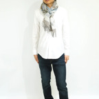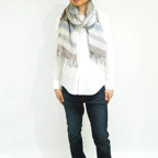 スタンダードな大判サイズで、首に巻くことはもちろん、室内でのひざ掛けにも、肩から羽織る使い方もできます。特に羽織りは、パッと華やかにエレガントな雰囲気に変わります。上半身を覆えるので、着ている服を気にせず合わせることができます。忙しい朝もコーディネートを気にする必要はありません。