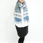 スタンダードな大判サイズで、首に巻くことはもちろん、室内でのひざ掛けにも、肩から羽織る使い方もできます。特に羽織りは、パッと華やかにエレガントな雰囲気に変わります。上半身を覆えるので、着ている服を気にせず合わせることができます。忙しい朝もコーディネートを気にする必要はありません。