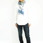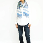 スタンダードな大判サイズで、首に巻くことはもちろん、室内でのひざ掛けにも、肩から羽織る使い方もできます。特に羽織りは、パッと華やかにエレガントな雰囲気に変わります。上半身を覆えるので、着ている服を気にせず合わせることができます。忙しい朝もコーディネートを気にする必要はありません。