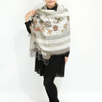 主張しすぎないデザインが魅力の上質ウール刺繍ストール。普段使いにもよそ行きな装いにも、どちらでも使いやすくなっています。