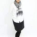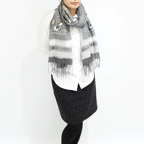 スタンダードな大判サイズで、首に巻くことはもちろん、室内でのひざ掛けにも、肩から羽織る使い方もできます。特に羽織りは、パッと華やかにエレガントな雰囲気に変わります。上半身を覆えるので、着ている服を気にせず合わせることができます。忙しい朝もコーディネートを気にする必要はありません。
