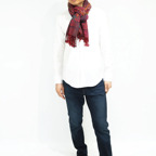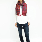 スタンダードな大判サイズで、首に巻くことはもちろん、室内でのひざ掛けにも、肩から羽織る使い方もできます。特に羽織りは、パッと華やかにエレガントな雰囲気に変わります。上半身を覆えるので、着ている服を気にせず合わせることができます。忙しい朝もコーディネートを気にする必要はありません。