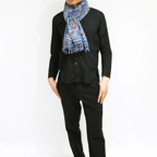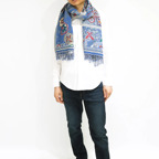 スタンダードな大判サイズで、首に巻くことはもちろん、室内でのひざ掛けにも、肩から羽織る使い方もできます。特に羽織りは、パッと華やかにエレガントな雰囲気に変わります。上半身を覆えるので、着ている服を気にせず合わせることができます。忙しい朝もコーディネートを気にする必要はありません。