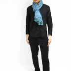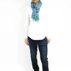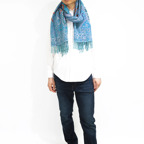 スタンダードな大判サイズで、首に巻くことはもちろん、室内でのひざ掛けにも、肩から羽織る使い方もできます。特に羽織りは、パッと華やかにエレガントな雰囲気に変わります。上半身を覆えるので、着ている服を気にせず合わせることができます。忙しい朝もコーディネートを気にする必要はありません。