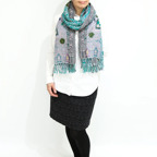 スタンダードな大判サイズで、首に巻くことはもちろん、室内でのひざ掛けにも、肩から羽織る使い方もできます。特に羽織りは、パッと華やかにエレガントな雰囲気に変わります。上半身を覆えるので、着ている服を気にせず合わせることができます。忙しい朝もコーディネートを気にする必要はありません。
