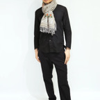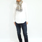 スタンダードな大判サイズで、首に巻くことはもちろん、室内でのひざ掛けにも、肩から羽織る使い方もできます。特に羽織りは、パッと華やかにエレガントな雰囲気に変わります。上半身を覆えるので、着ている服を気にせず合わせることができます。忙しい朝もコーディネートを気にする必要はありません。