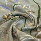 全面に施された刺繍は職人がハンドミシンで丁寧に製作しています。立体感のある刺繍が美しく、装いのアクセントに最適です。