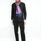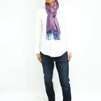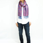 スタンダートな大判サイズで巻いても羽織っても、どちらも使いやすいタイプです。特に羽織は全体の印象がパッと華やかに、エレガントな雰囲気に変化します。