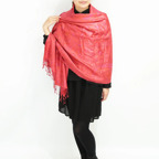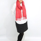 スタンダートな大判サイズで巻いても羽織っても、どちらも使いやすいタイプです。特に羽織は全体の印象がパッと華やかに、エレガントな雰囲気に変化します。