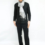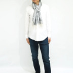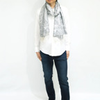 スタンダートな大判サイズで巻いても羽織っても、どちらも使いやすいタイプです。特に羽織は全体の印象がパッと華やかに、エレガントな雰囲気に変化します。