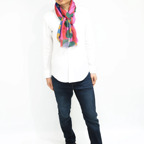 生地感よりカジュアルな普段使いにも、少しフォーマルなシーンでも使いやすいタイプです。スタイルや場所を問わず合わせることができる優れたストールです。