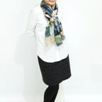 まるでアートのようなモダンなデザイン。ファッショニスタに贈る、ライトな着け心地のウールシルクストールです。
