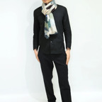 まるでアートのようなモダンなデザイン。ファッショニスタに贈る、ライトな着け心地のウールシルクストールです。