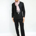 カジュアルもフォーマルも一瞬でこなすのがこのストール。落ち着き感がありつつも華やかな印象になります。