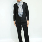 スタンダードな大判サイズで、首に巻くことはもちろん、室内でのひざ掛けにも、肩から羽織る使い方もできます。特に羽織りは、パッと華やかにエレガントな雰囲気に変わります。上半身を覆えるので、着ている服を気にせず合わせることができます。忙しい朝もコーディネートを気にする必要はありません。