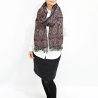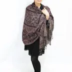縦の長さが220cm、横幅105cmの特大ショールサイズで、ゆるっと巻くだけで立体的でボリューム感のある表情を作り出せます。広げて羽織れば上半身をすっぽりと覆うことができるのでトップスを気にせず合わせることができます。秋冬のアウター代わりにはもちろん、真夏の室内での冷房対策や膝掛けとしても使いやすくなっています。