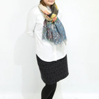 非常に大きなショールサイズで、広げて羽織れば上半身をすっぽりと覆うことができます。縦横の長さも十分にあるため、巻き方の自由度が広がります。程よいボリューム感と立体感を簡単につくることができるため、一巻きでこなれた印象になります。面積もあるので、真夏の室内での冷房対策や膝掛けとしても使いやすくなっています。