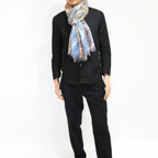非常に大きなショールサイズで、広げて羽織れば上半身をすっぽりと覆うことができます。縦横の長さも十分にあるため、巻き方の自由度が広がります。程よいボリューム感と立体感を簡単につくることができるため、一巻きでこなれた印象になります。面積もあるので、真夏の室内での冷房対策や膝掛けとしても使いやすくなっています。