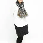 非常に大きなショールサイズで、広げて羽織れば上半身をすっぽりと覆うことができます。縦横の長さも十分にあるため、巻き方の自由度が広がります。程よいボリューム感と立体感を簡単につくることができるため、一巻きでこなれた印象になります。面積もあるので、真夏の室内での冷房対策や膝掛けとしても使いやすくなっています。