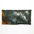 ダイナミックな柄を掛け合わせてアクセントをつけた、大人の遊び心をくすぐる一枚。左右非対称のアシンメトリーデザインで、巻き方によって表情の変化も楽しめます。