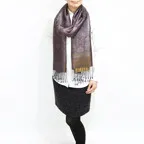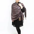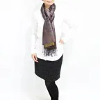 スタンダートな大判サイズで巻いても羽織っても、どちらも使いやすいタイプです。特に羽織は全体の印象が大きく変わります。