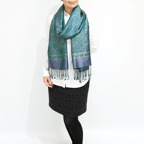 スタンダートな大判サイズで巻いても羽織っても、どちらも使いやすいタイプです。特に羽織は全体の印象が大きく変わります。