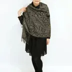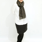 スタンダードな大判サイズで、首に巻くことはもちろん、室内でのひざ掛けにも、肩から羽織る使い方もできます。特に羽織りは、パッと華やかにエレガントな雰囲気に変わります。上半身を覆えるので、着ている服を気にせず合わせることができます。忙しい朝もコーディネートを気にする必要はありません。