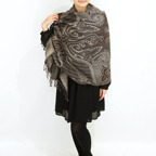 スタンダードな大判サイズで、首に巻くことはもちろん、室内でのひざ掛けにも、肩から羽織る使い方もできます。特に羽織りは、パッと華やかにエレガントな雰囲気に変わります。上半身を覆えるので、着ている服を気にせず合わせることができます。忙しい朝もコーディネートを気にする必要はありません。