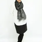非常に大きなショールサイズで、ボリュームも十分。小顔効果も期待できます。
