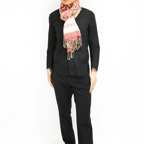 スタンダードな大判サイズで、首に巻くことはもちろん、室内でのひざ掛けにも、肩から羽織る使い方もできます。特に羽織りは、パッと華やかにエレガントな雰囲気に変わります。上半身を覆えるので、着ている服を気にせず合わせることができます。忙しい朝もコーディネートを気にする必要はありません。