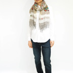 カラフルな立体刺繍と生地が層になった立体感のあるウールストール。暖かさはもちろん、見た目以上に軽い質感に仕上がっています。